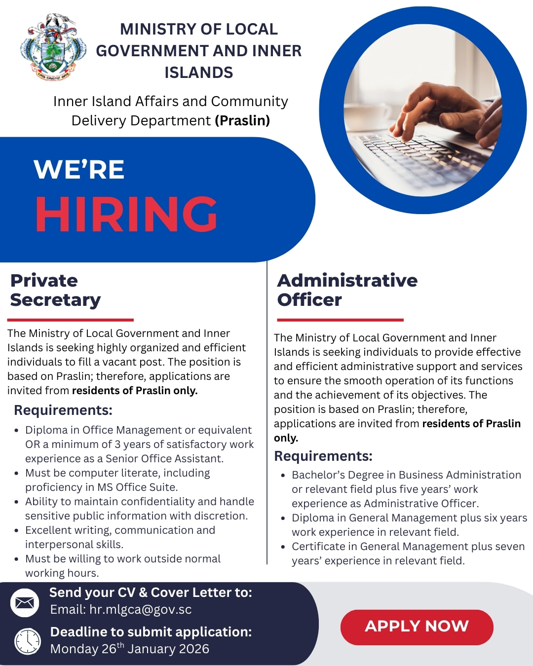 Interested candidates should Sign-up or login to apply now or send your CV & Cover letter to: hr.mlgca@gov.sc