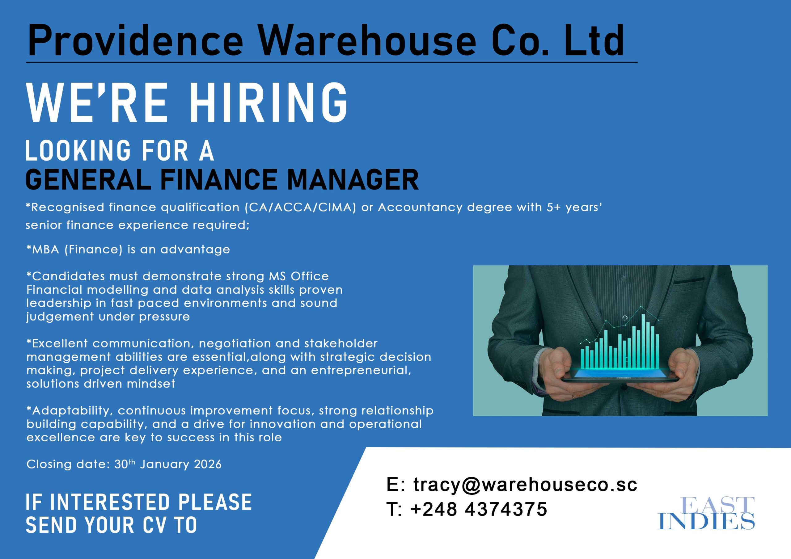 Interested candidates should Sign-up or login to apply now or please send your CV to tracy@warehouseco.sc