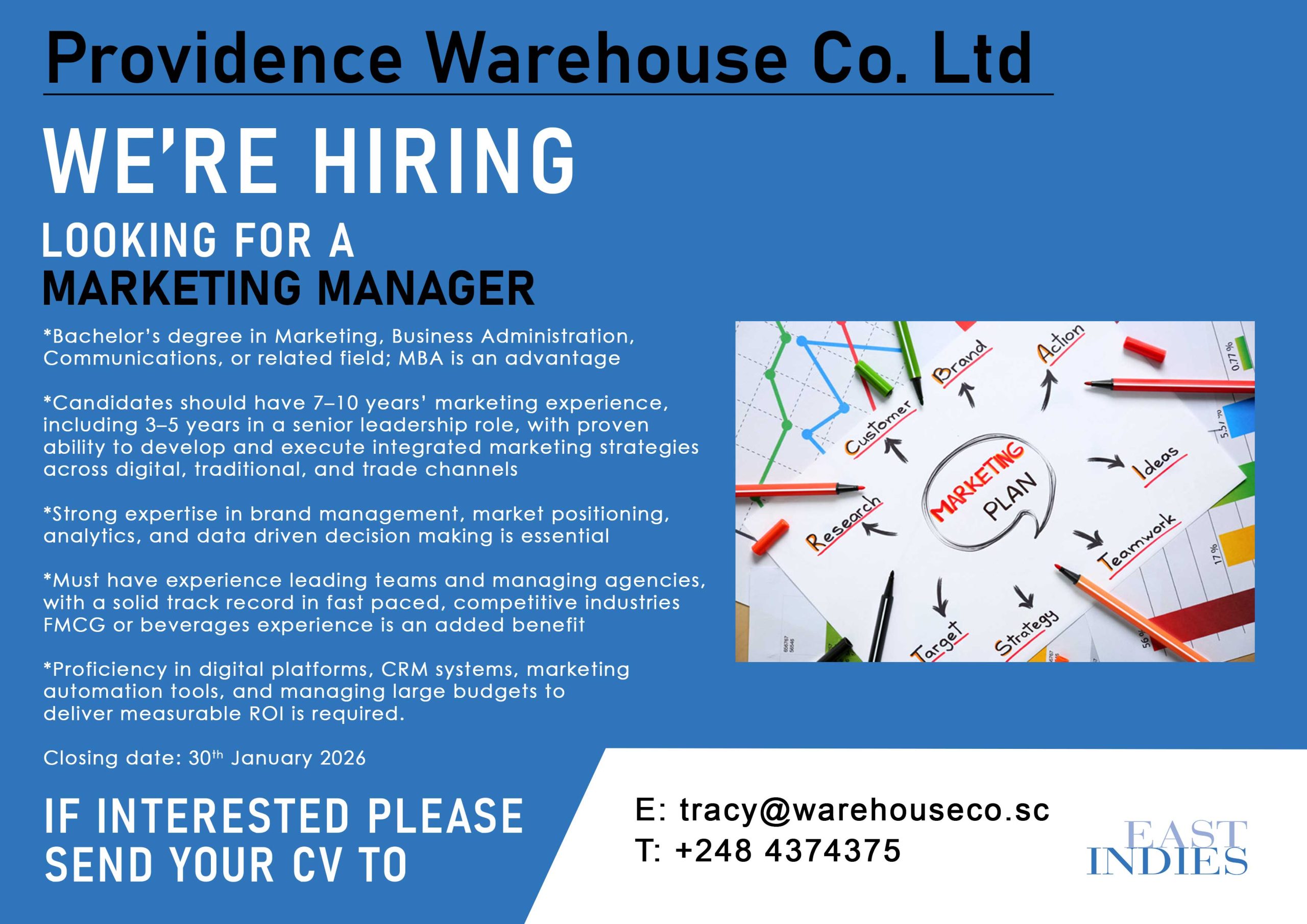 Interested candidates should Sign-up or login to apply now or please send your CV to tracy@warehouseco.sc